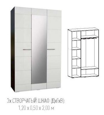 Шкаф 3-х створчатый с зеркалом (мод.№4)