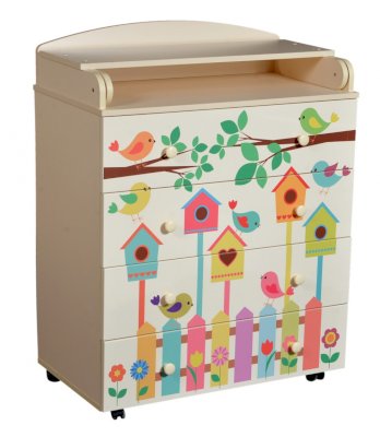 Пеленальный комод 800/4 Lilu 3 отличается привлекательным дизайном с использованием тематических детских принтов. В конструкции изделия предусмотрены 4 маленьких передвижных колеса, несколько вместительных ящичков на шариковых направляющих и откидывающаяся пеленальная столешница. Детский пеленальный комод, декорированный красочным рисунком, вмещает в себя постельные принадлежности, средства гигиены, распашонки, подгузники, игрушки, ползунки и другие личные вещи ребенка. Гладкая столешница идеально подходит для пеленания ребенка, а колесики позволяют быстро перемещать комод.