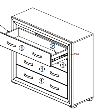 4 выдвижных ящика на металлических направляющих