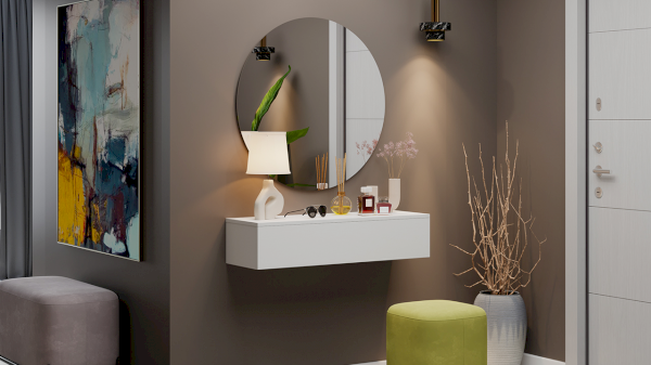 Тип 2 - это более крупные размеры, которые позволяют использовать ее как туалетный столик, консоль в прихожую или подвесную тумбу ТВ. Такая тумба может стать не только функциональным элементом интерьера, но и стильным дополнением к общей концепции дизайна помещения. Благодаря своей универсальности, такую тумбу можно использовать в разных комнатах и для разных целей. Например, она может стать отличным дополнением к действующим коллекциям мебели, таким как «Агата» или «Хилтон».