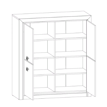 Состоит из четырех отделений за распашными дверями, в каждом отделении по одной вкладной полке.