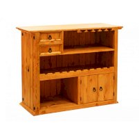 Оригинальное и просто незаменимое приобретение для загородного дома или квартиры! Настоящий деревянный бар разместит бутылки, сверху можно повесить бокалы. Два малых ящика и небольшой шкаф с дверцами пригодятся для хранения мелочей, салфеток, прочих аксессуаров.  Модель отлично сочетается с классической мебелью и гармонирует с интерьерами в стиле прованс.