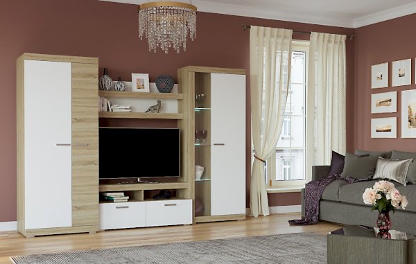 Дуб Сонома/Белый глянец