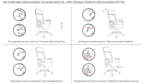 Тип механизма кресла: "топ-ган" качание с регулировкой под вес и фиксацией в 1 положении
