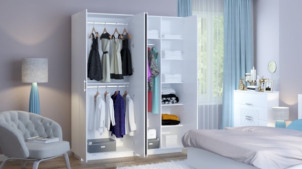 • В левой секции две штанги под короткие вещи и одна жесткая полка.