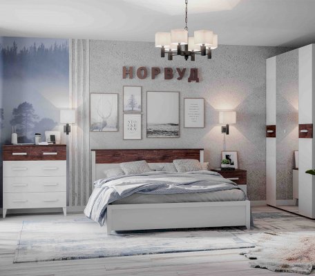 Модульная спальня Норвуд (Глазов) - за 72 608 руб. в Жуковском. Купите на сайте jukovskiy.onlinemarketmebeli.ru или по телефону 8(800)505-30-63 уже сегодня! Уточнить наличие, комплектацию, актуальную цену можно бесплатно у менеджера ежедневно. Закажите Модульная спальня Норвуд (Глазов) до конца акции! Доступна покупка в кредит, рассрочку. Доставим со склада или на заказ.