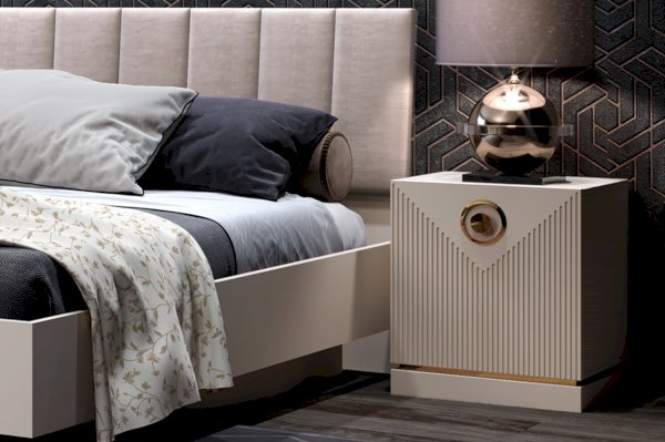 Что нужно чтобы хорошо отдохнуть после трудового дня? Конечно уютный уголок в спальне с комфортной кроватью, компаньоном к которой выступает прикроватная тумба. Отличительной особенностью элементов модульной коллекции «Капри» является гармония пастельных нежных оттенков и яркий и модный дизайн. Прикроватная тумба Капри не исключение, она выполнена из ЛДСП и МДФ нежного оттенка сатин, при этом фасады МДФ оформлены красивой фрезеровкой в виде параллельных линий. Покрытие фасадов – финиш-пленка ПВХ с очень приятной на ощупь поверхностью софт тач. Яркая металлическая ручка в цвете золото красуется на фасаде и завершает нежный образ мебели и подчеркивая принадлежность к стилю модерн.