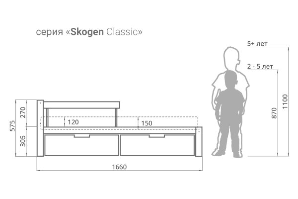 Кровать “Svogen Classic” станет любимым местом для сна и игр мальчика или девочки от 2 до 10-12 лет.