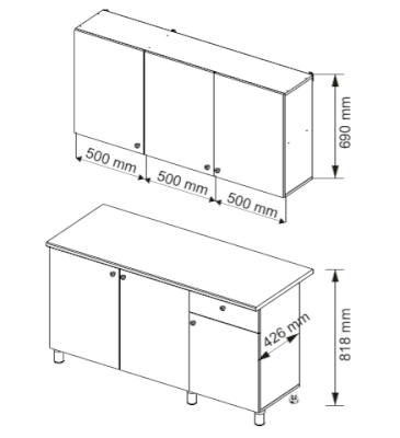 Высота нижних шкафов, мм 774 / 818