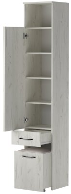 Пенал с выдвижным пуфом на колёсиках "ИТАЛИЯ" П1Я-400 одностворчатый с 4-мя полками и ящиком на роликовых направляющих. Пуф предназначен для хранения вещей, имеет откидную крышку с мягким сиденьем. Обработка зеркала "фацет" по периметру.
