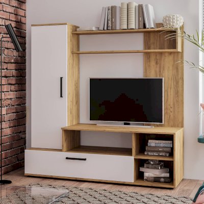 Гостиная Евро-2 – отличный выбор для небольшой комнаты, который с лёгкостью впишется в интерьер любого стиля. Компактный размер данной модели сумел вместить в себя различные места хранения, а также ТВ зону. Светлые фасады в комбинации с корпусом, открытые полки для ваших любимых книг или сувениров, элегантная лицевая фурнитура.