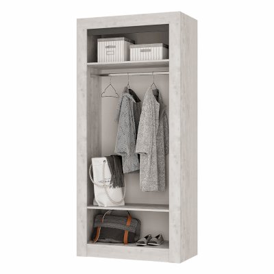 Двустворчатый распашной шкаф «Леонардо» с просторной антресольной полкой для хранения головных уборов, горизонтальной хромированной штангой для плечиков и нижней полкой, в которой удобно хранить коробки с обувью, выдержан в общей стилистики коллекции. Сборка универсальна.