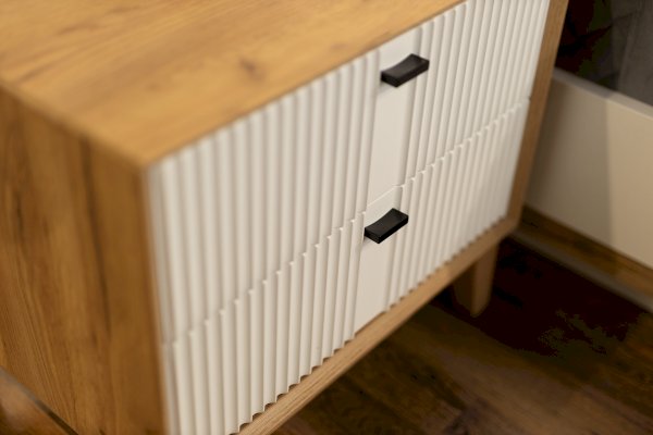 • Два выдвижных ящика на направляющих нижнего крепления не полного выдвижения с доводчиком.