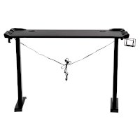 Поверхность стола не скользкая, устойчивая к загрязнениям, мелким царапинам. На столешнице можно расположить все необходимое: письменные принадлежности, документы, игровые девайсы, настольную лампу.  В конструкции предусмотрено 2 отверстия для проводов, а также подстаканник и крючок для наушников.