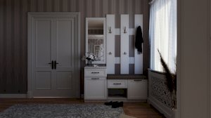 Цветовое решение: Холст белый матовый (МДФ) + Белое дерево (погонаж) + Рамух (ЛДСП).
