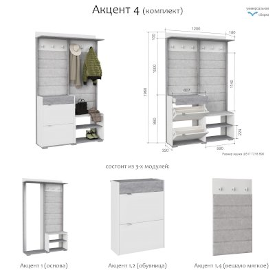 Прихожая Акцент 4 (Аквилон) - за 23 321 руб. в Жуковском. Купите на сайте jukovskiy.onlinemarketmebeli.ru или по телефону 8(800)505-30-63 уже сегодня! Уточнить наличие, комплектацию, актуальную цену можно бесплатно у менеджера ежедневно. Закажите Прихожая Акцент 4 (Аквилон) до конца акции! Доступна покупка в кредит, рассрочку. Доставим со склада или на заказ.