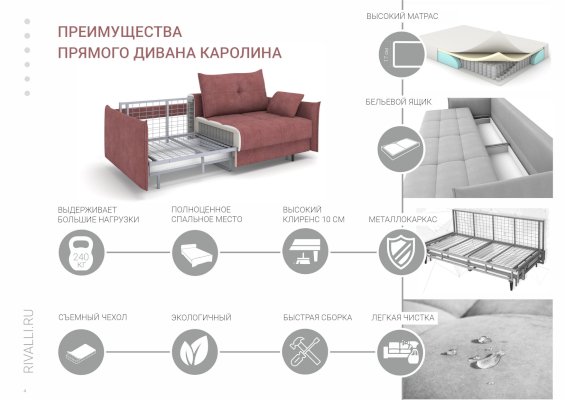 Прямой диван Каролина (Rivalli)