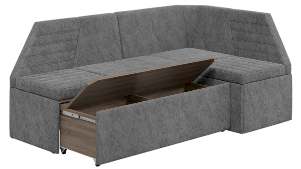 Новинка является многофункциональным предметом мебели, ведь в обычном виде скамья угловая поможет удобно разместиться за обеденным столом, а механизм трансформации превращает его в полноценное спальное место. Для раскладывания необходимо выложить подушки, которые входят в комплект, на выдвигаемую часть скамьи. Модель позволит Вам отказаться от большого количества подвесных полок и дополнительных модулей за счет того, что в ней имеется вместительное место для хранения под сидениями.