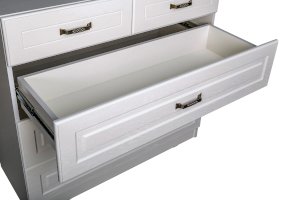 Фурнитура: Распашные фасады на четырёхшарнирных петлях, подъёмные фасады на газлифтах, выдвижные ящики на шариковых направляющих полного выдвижения.
