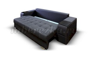 Диван со столиком значительно экономит пространство в помещении и, несомненно, делает отдых на диване комфортнее, ведь буквально под рукой есть раскладной столик в подлокотнике, на который можно поставить бокал, положить книгу или журнал, удобен при работе с ноутбуком. Другой подлокотник оборудован выдвижными полочками для хранения различных вещей. Большой ящик для белья внутри дивана, простой, и надежный механизм трансформации «тик-так» подтверждают функциональность этой модели. Блок независимых пружин, прошивка на сиденье – гарантия длительной эксплуатации дивана.