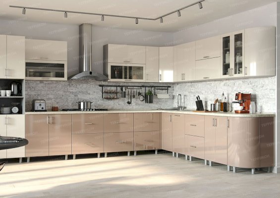 Модульный кухонный гарнитур Хайтек крем брюле глянец (Террикон)