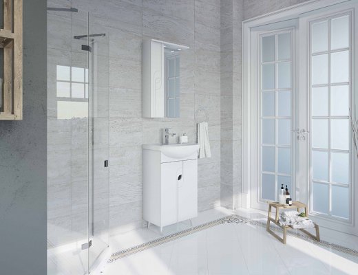 Корпус из влагостойкой ЛДСП и фасады из высококачественной МДФ покрыты белой глянцевой краской ультрафиолетового отверждения.